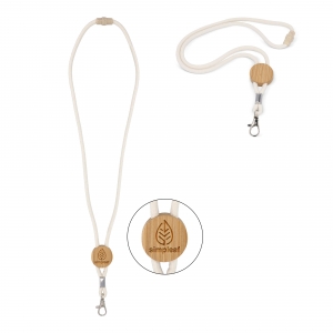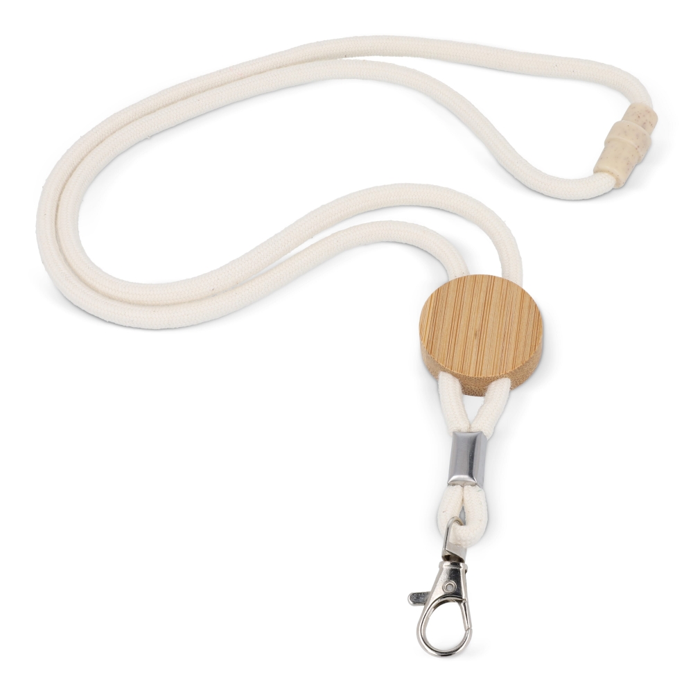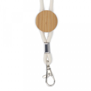 Artikel-Nr: ART95310N0094Dieses Lanyard ist aus strapazierfähiger Baumwollkordel gefertigt und verfügt über einen Sicherheitsverschluss und einen Metallclip zur sicheren Befestigung. Der Bambusschieber erleichtert die Verstellbarkeit und bietet gleichzeitig Platz für Ihr Branding.