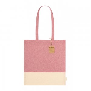 Artikel-Nr: AND733871-05Zweifarbige Einkaufstasche aus recycelter Baumwolle und langen Henkeln. Material: 100 % recycelte Baumwolle, 120 g / m². MIt Label Recycelte Baumwolle.
