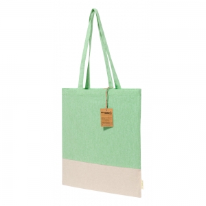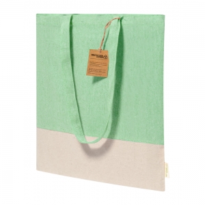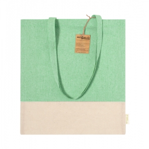 Artikel-Nr: AND733871-07Zweifarbige Einkaufstasche aus recycelter Baumwolle und langen Henkeln. Material: 100 % recycelte Baumwolle, 120 g / m². MIt Label Recycelte Baumwolle.
