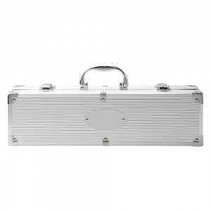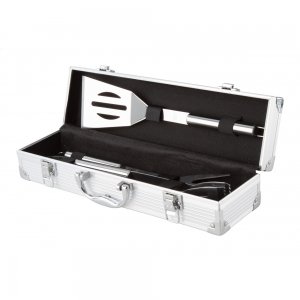 Artikel-Nr: AND8003843 teiliges Barbeque-Set (Fleischgabel, Bratenwender und Grillzange) in Aluminiumkoffer.