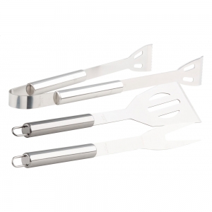 Artikel-Nr: AND8003843 teiliges Barbeque-Set (Fleischgabel, Bratenwender und Grillzange) in Aluminiumkoffer.