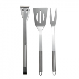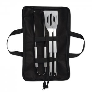 Artikel-Nr: OCBMO8290-033-teiliges Edelstahl-BBQ-Set inkl. Grillgabel, Grillzange und Wender. Verpackt in einer schwarzen Non Woven Tasche mit Reißverschluss.