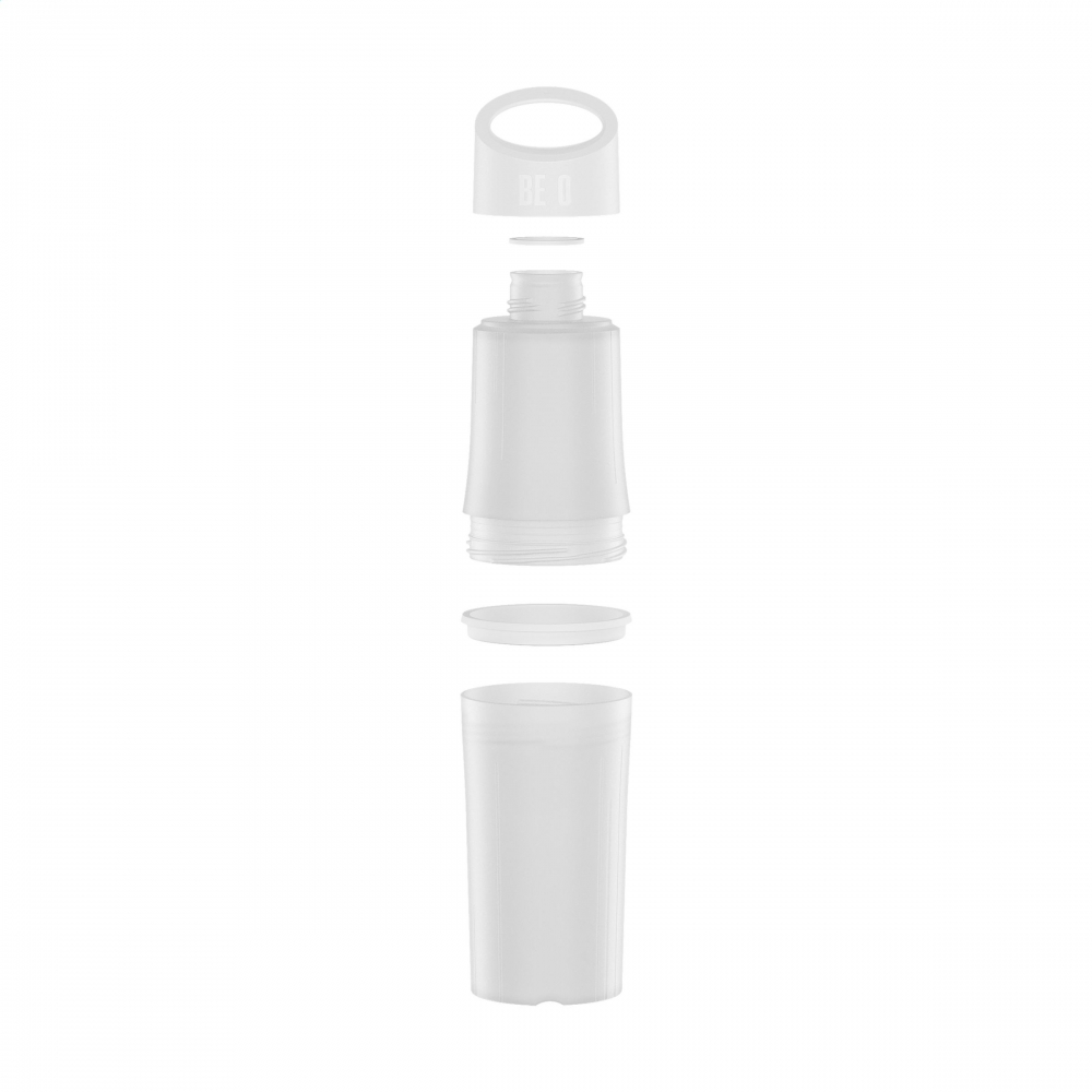 Artikel-Nr: CLPW42810Wasserflasche der Marke BE O Lifestyle. Die Flasche besteht zu 94% aus BIO-HDPE, das aus Zuckerrohr gewonnen wird. 100% recycelbar. Das besonders auffällige Design macht sie zu einem absoluten Blickfang. Die Flasche hat einen praktischen, auslaufsicheren Schraubverschluss und ist leicht zu transportieren. Die Flasche setzt sich aus mehreren Teilen zusammen. Die einzelnen Teile können separat als Trinkbecher verwendet werden, sodass Sie Ihr Getränk mühelos teilen können. Das macht auch die Reinigung besonders einfach. Geeignet für alle Getränke ohne Kohlensäure und alkoholische Getränke bis zu 13%. Seien Sie vorsichtig, wenn die Tasse mit heißer Flüssigkeit gefüllt ist. Tragen Sie den Becher aufrecht und schütteln Sie ihn nicht. Geeignet für Lebensmittel und geruchs- und geschmacksneutral. Die verwendeten Materialien entsprechen den Anforderungen der Spülmaschinengeeignet bis 65°C. Um den Aufdruck zu erhalten, wird Waschen von Hand empfohlen. Fassungsvermögen 500 ml. EU-zertifiziert. Niederländisches Design. Made in Europe.
