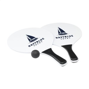 Artikel-Nr: CLP484498Sportliches Strandset: 2 Schläger aus MDF-Holz mit PP-Kunststoffgriffen und Gummiball. Pro Set in einem Netz zur Aufbewahrung.