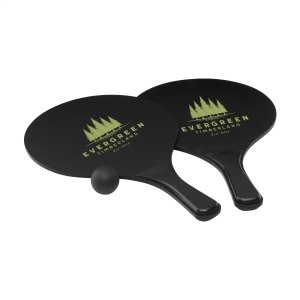 Artikel-Nr: CLP484497Sportliches Strandset: 2 Schläger aus MDF-Holz mit PP-Kunststoffgriffen und Gummiball. Pro Set in einem Netz zur Aufbewahrung.