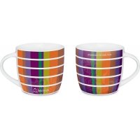 weißer Becher aus Porzellan. Orange-weißer Becher aus Keramik.