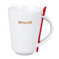 Becher mit Kunststofflöffel, erhältlich in 6 Farben: gelb, orange, rot, grün, blau und schwarz