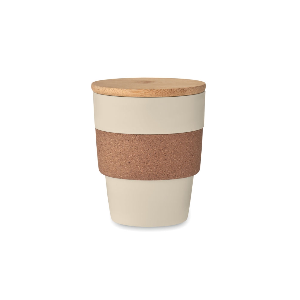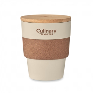 Artikel-Nr: OCBMO6981-13Einwandiger Trinkbecher aus PP. Griff aus Kork und Deckel aus Bambus. Füllmenge: 300 ml. Da es sich um einen einwandigen Becher handelt, kann es trotzdem zu einer Wärmeübertragung kommen. Bambus ist ein natürliches Produkt, es kann daher zu leichten Abweichungen in Farbe, Dekor und Maßen kommen.