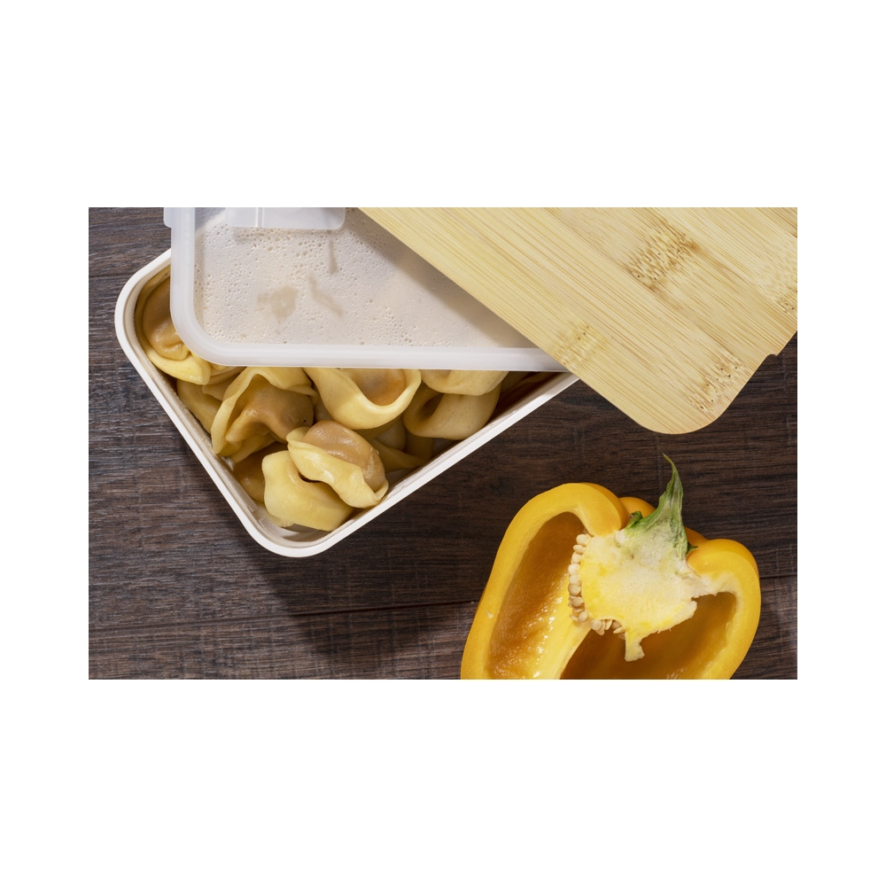 Artikel-Nr: ARD16534-01Der SINGLE Lebensmittelbehälter ist aus Kunststoff gefertigt, hat einen Bambusdeckel und ein Gummiband, das ein unbeabsichtigtes Öffnen verhindert. Es hat ein Fach. Der Behälter kann in der Spülmaschine, in der Mikrowelle und im Gefrierschrank verwendet werden.