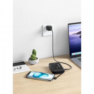 Artikel-Nr: CLP263174-001Powerbank 10.000 mAh mit integriertem Kabel, von der Marke Belkin. Das Gehäuse (ohne Kabel) besteht zu 72% aus recycelten Materialien. Mit Pass-Through-Ladefunktion: Geräte können aufgeladen werden, während die Powerbank selbst aufgeladen wird. Laden Sie zwei Geräte gleichzeitig mit einer Leistung von bis zu 20 W über das integrierte USB-C-Kabel und den zusätzlichen Anschluss. Diese Powerbank bietet bis zu 43 Stunden zusätzliche Akkulaufzeit in einem kompakten und leichten Gehäuse. Mit LED-Anzeigeleuchte. Mit LED-Anzeigeleuchte. 100% kunststofffreie Verpackung. Hergestellt aus recyceltem Kunststoff. Inklusive Gebrauchsanweisung.