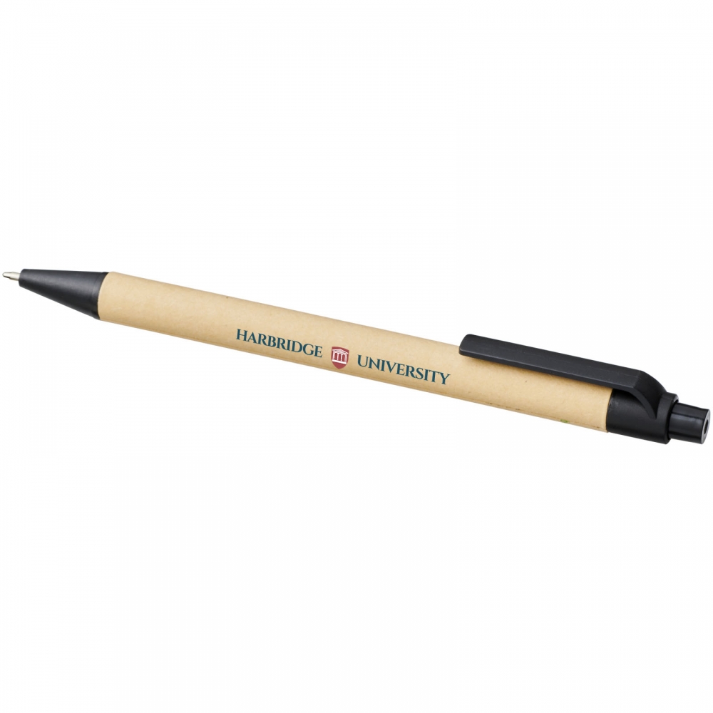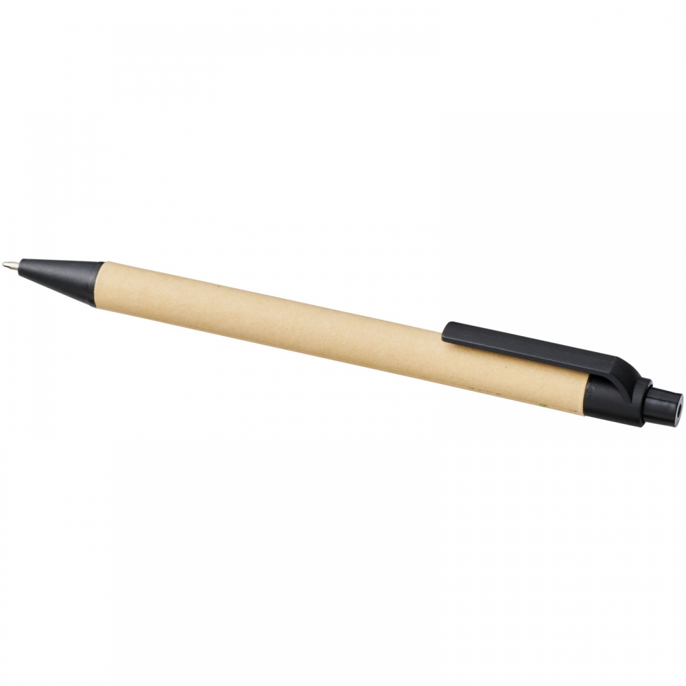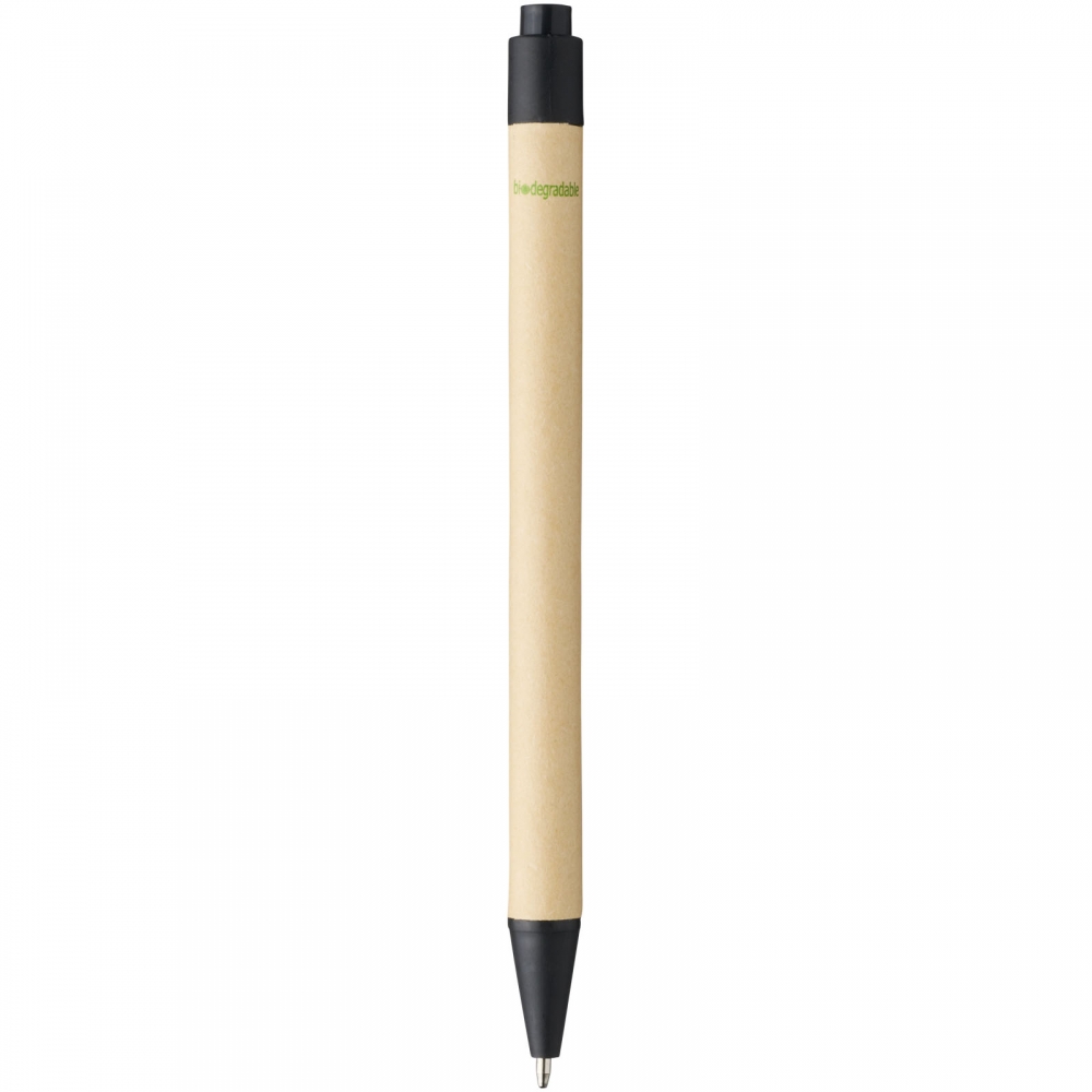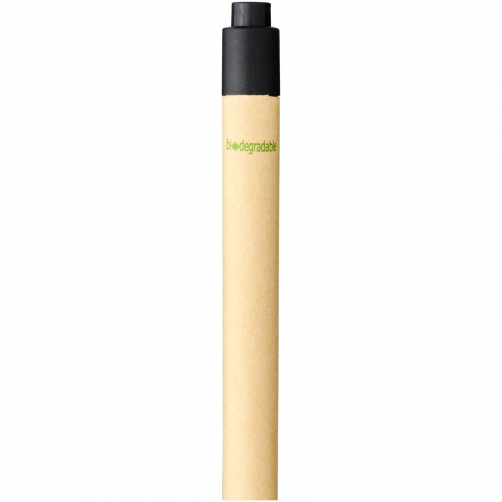 Artikel-Nr: CPO10738400Umweltfreundlicher Kugelschreiber mit Klickmechanismus, einem Schaft aus biologisch abbaubarem Papiermaterial und Verzierungen aus Mais-Kunststoff in verschiedenen Farben. Die Farbe des Recyclingkartons kann variieren.