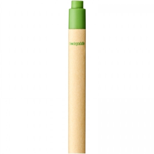 Artikel-Nr: CPO10738404Umweltfreundlicher Kugelschreiber mit Klickmechanismus, einem Schaft aus biologisch abbaubarem Papiermaterial und Verzierungen aus Mais-Kunststoff in verschiedenen Farben. Die Farbe des Recyclingkartons kann variieren.