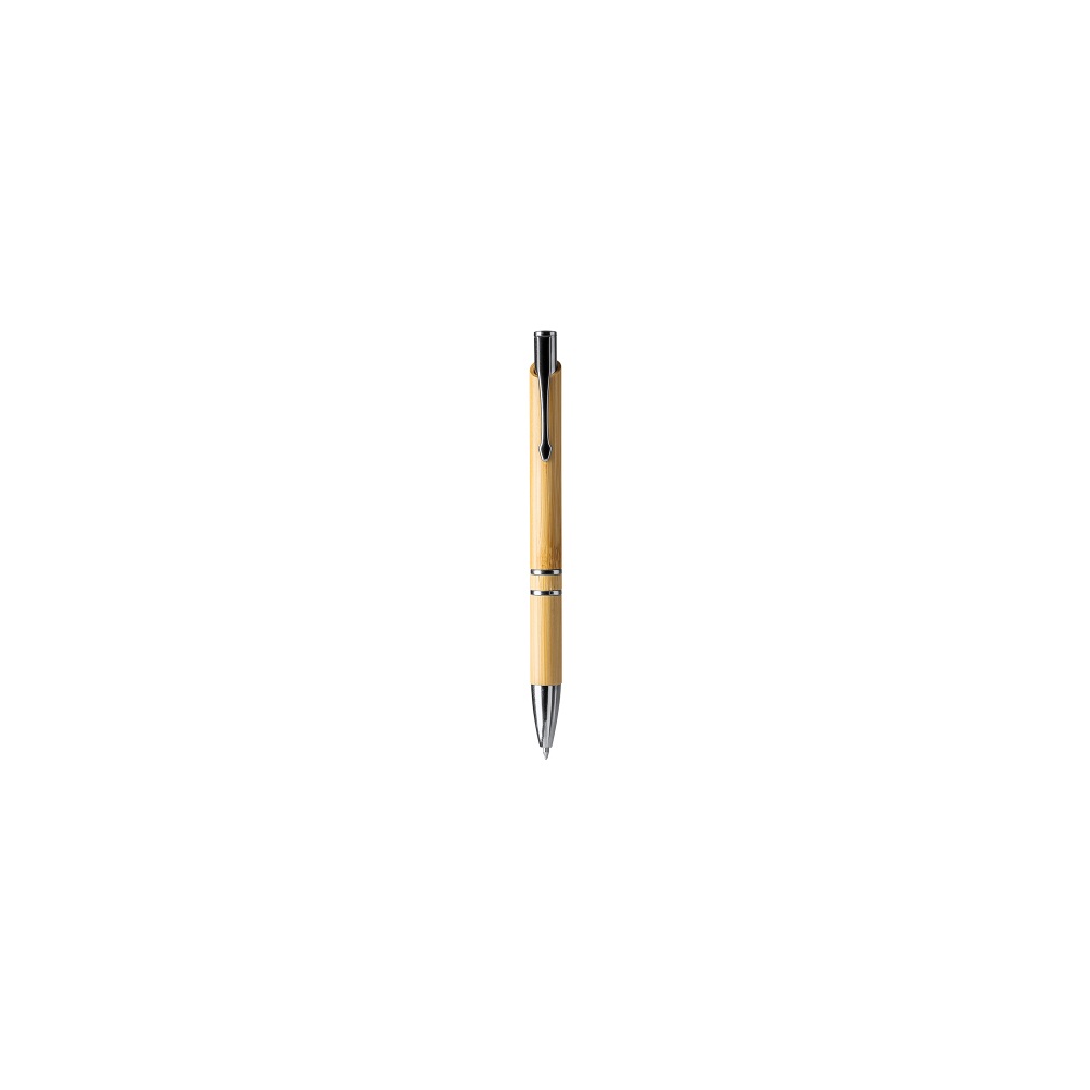 Artikel-Nr: PRM124100_20Kugelschreiber mit Bambusgehäuse und Druckknopf in Metalloptik. Jumbo-Mine mit blauer Tinte.