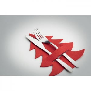Artikel-Nr: OCBCX1479-05Set mit 4 Besteckhaltern aus RPET-Filz in Form eines Tannenbaums. Lieferung in einer Schachtel aus Kraftpapier.