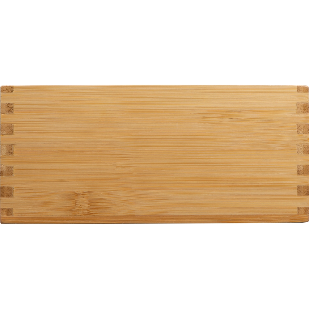Artikel-Nr: MCM8371213Großer Besteckkasten aus Bambus mit Serviettenfach (10 x 10cm) und zusätzlichen Fächern für Besteck, Sticks für Zucker und Salz. Ihre Werbung gravieren wir auf eine Seite.