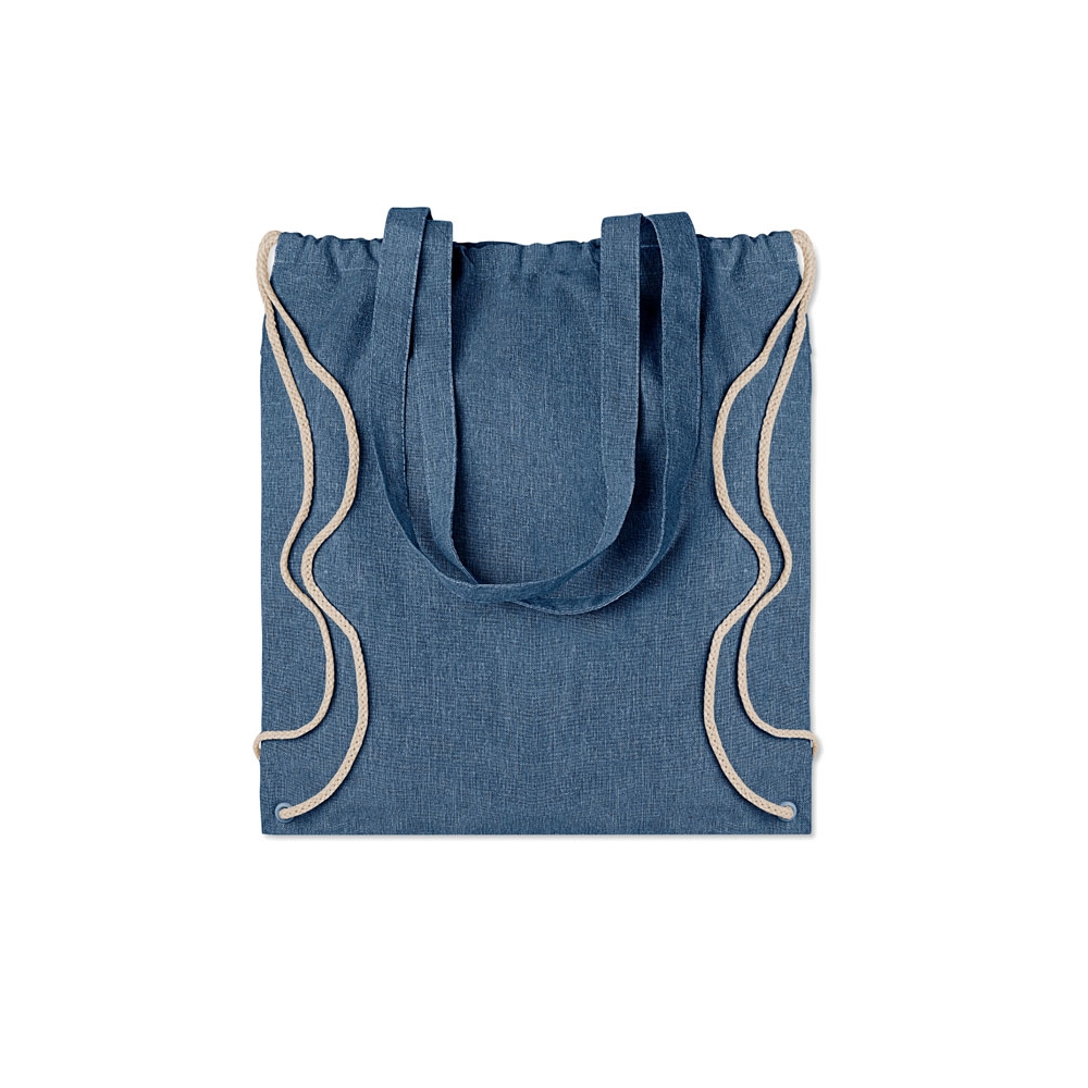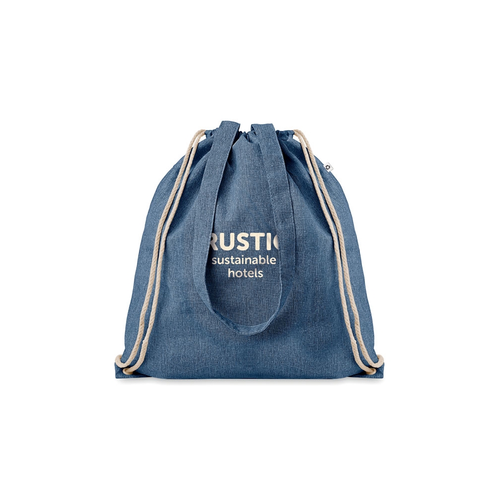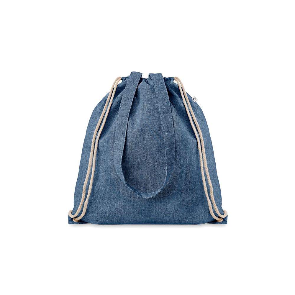 Artikel-Nr: OCBMO9603-372 tone (recycelte Baumwolle und recyceltes Polyester) Einkaufstasche mit Kordelzug und langen Henkeln (20%/80%). ca. 140 gr / m². Dieser Artikel kann nach dem Bedrucken schrumpfen.