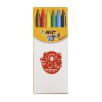 Artikel-Nr: 326BC1172Das ideale Werbegeschenk für Kinder, unterstützt durch die Siegermarken BIC® Kids und PLASTIDECOR®. Set mit sechs Wachsmalkreiden für Kinder ab zwei Jahren. Besonders sauber, hinterlässt keine Flecken an den Händen oder der Kleidung, widerstandsfähig und einfach anzuspitzen! Das Produkt erfülltdie europäische Spielzeugnorm und wird alljährlich von einem unabhängigen Labor geprüft.