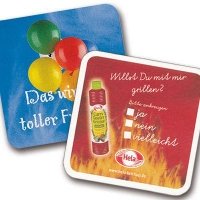 Artikel-Nr: WBierdeckel_eckigBierdeckel gehören unter jedes Glas. Werbung auf Bierdeckeln ist eine sehr beliebte Werbeform. Die Stärken des Bierdeckels als Werbemittel sind sowohl sein hoher Nutz- als auch sein nicht zu unterschätzender Sammlerwert. , eckige Stanzform bis 4-farbig nach Skala oder Sonderfarben nach Vorgabe