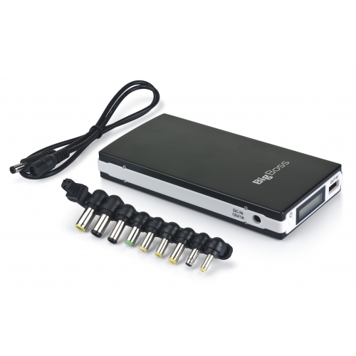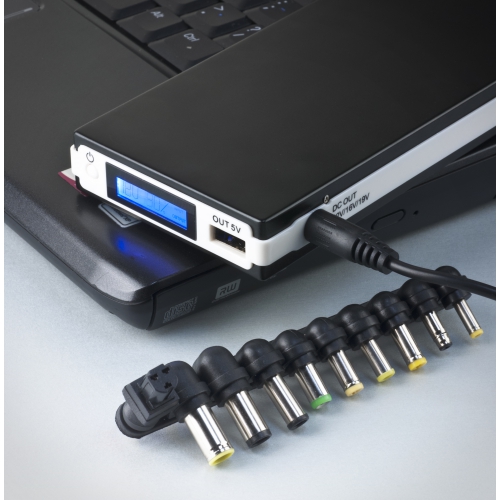 Artikel-Nr: A232CM5141Hoch beanspruch barer AC Adapter mit LCD Schirm. Diese Powerbank hat eine Li-Ion Polymer Batterie mit hoher Kapazität (13200 mAh) und einen Input von 5V/2A und Output von 12V/1A um Ihr Handy, Tablet und sogar Ihren Laptop auf zu laden. Inklusive 3 in 1 Ladekabel und 10 Aufsätze die für jeden Laptop geeignet sind.