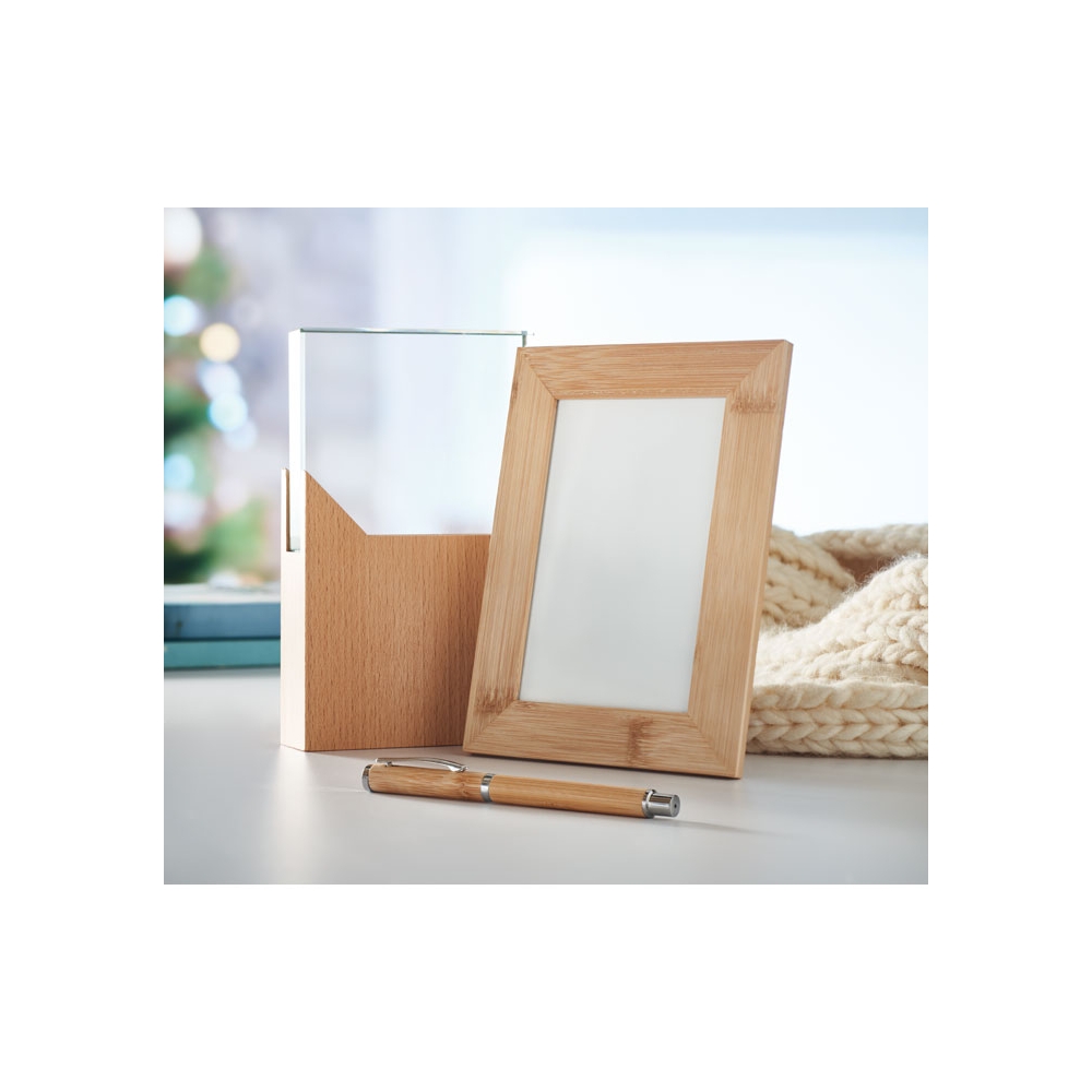Artikel-Nr: OCBMO6653-40Bilderrahmen aus Bambus. Der Rahmen kann hängend, vertikal oder horizontal aufgestellt werden. Bildgröße: 15 x 10 cm. Bambus ist ein natürliches Produkt, es kann daher zu leichten Abweichungen in Farbe, Dekor und Maßen kommen.