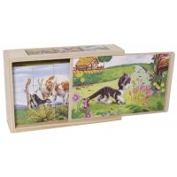 Beliebtes Kinderpuzzle mit Vorlagen im Holzschubkistchen. Aus 15 bedruckten Holzwürfeln kann man sechs Tierbilder legen. Achtung! Nicht geeignet für Kinder unter 36 Monaten.