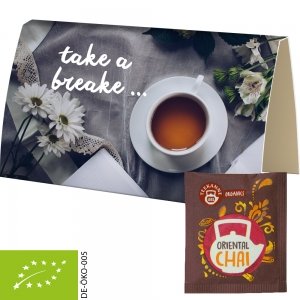 Bio Beuteltee Oriental Chai, ca. 1,8g, Werbekarte A6 gefaltet