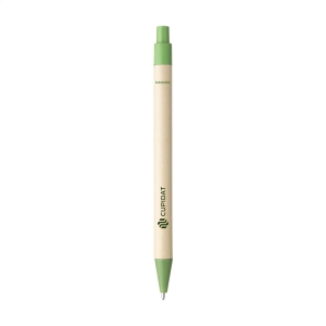 Artikel-Nr: CLP262486-004128Kugelschreiber mit Halter aus Recyclingpapier. Der farbige Clip, der Druckknopf und die Spitze bestehen aus biologisch abbaubarem PLA. Mit blauer Tinte.
