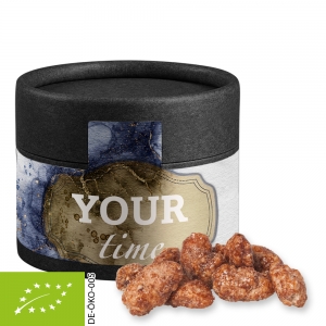Bio Feuergebrannte Mandeln, ca. 40g, Kraftpapierdose Mini schwarz