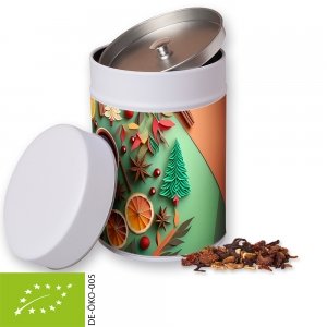 Artikel-Nr: FNM02234Metalldose Maxi aus Metall. Werbeanbringung als Etikett in 4c individuell bedruckbar. Zutaten Bio Glühweingewürz fein: Hagebutten*, Hibiskus*, Apfel*, Orangenschalen*, Zitronenschalen*, Zimt*, Nelken*. *aus kontrolliert biologischem Anbau.
