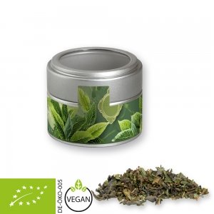 Bio Grüner Tee mit Minze, ca. 18g, Metalldose Mini mit Sichtfenster silber