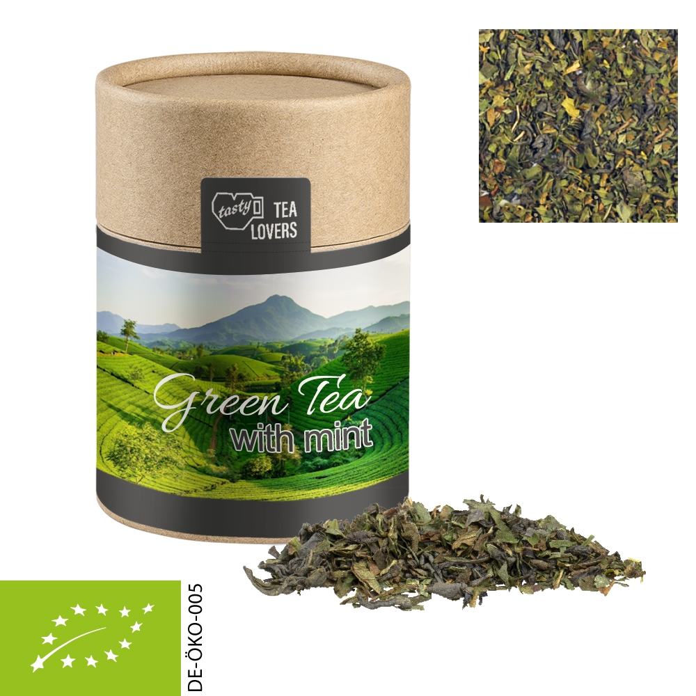 Bio Grüner Tee mit Minze, ca. 30g, Kraftpapierdose Midi