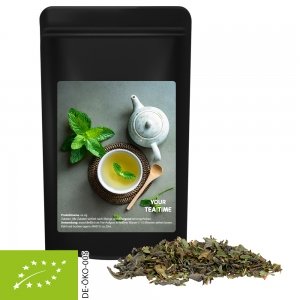 Bio Grüner Tee mit Minze, ca. 30g, Standbeutel Midi schwarz