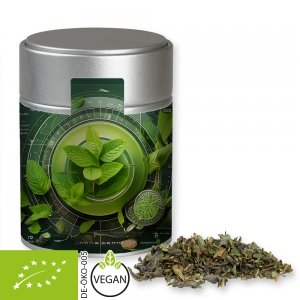 Bio Grüner Tee mit Minze, ca. 35g, Metalldose Midi silber
