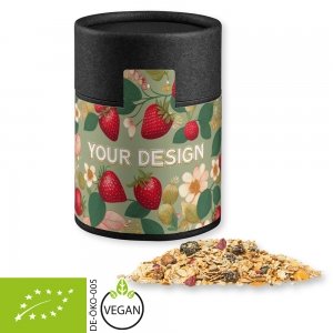 Bio Müsli Erdbeerchen, ca. 60g, Kraftpapierdose Midi schwarz