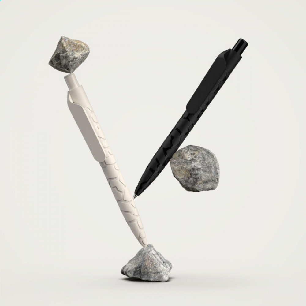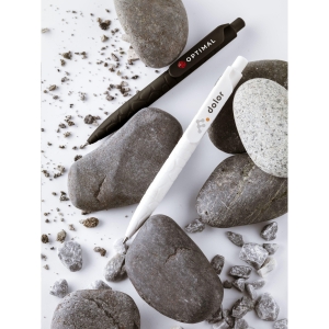 Artikel-Nr: CLP261337-002128Blauschreibender Kugelschreiber mit Druckknopf. Hergestellt aus 55 % PP Kunststoff und 45 % Naturstein. Der Stift hat ein schönes Relief, welches Natursteinen ähnelt.