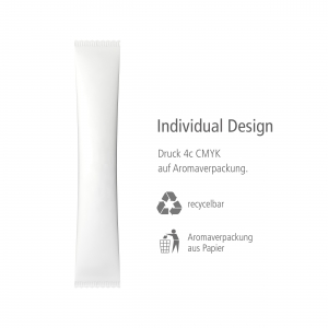 Artikel-Nr: SAN10-170-370-380Bio TeaStick (Individuelles Design). • Hergestellt aus Pflanzenfasern und Stärke • Ohne Gentechnik • Vegan • Nicht erdölbasiert • Zu 100% aus nachwachsenden und natürlichen Rohstoffen • Stick biologisch abbaubar (kompostierbar) • Aromaverpackung aus Papier Einfach und unkompliziert in der Anwendung: Durch die spezielle Perforation kann das Wasser zirkulieren, Geschmack und Wirkung entfalten sich bestmöglich. Das Vlies im Inneren sorgt für bröselfreien Tee und verhindert Nachtropfen. in BIO Kontrollstelle DE-ÖKO-039. Druck: 4c (CMYK) auf Aromaschutzverpackung aus Papier (Entsorgung im Altpapier)