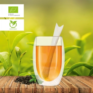 Artikel-Nr: SAN10-170-321-000Bio TeaStick (Premium Selection). • Hergestellt aus Pflanzenfasern und Stärke • Ohne Gentechnik • Vegan • Nicht erdölbasiert • Zu 100% aus nachwachsenden und natürlichen Rohstoffen • Stick biologisch abbaubar (kompostierbar) • Aromaverpackung aus Papier Einfach und unkompliziert in der Anwendung: Durch die spezielle Perforation kann das Wasser zirkulieren, Geschmack und Wirkung entfalten sich bestmöglich. Das Vlies im Inneren sorgt für bröselfreien Tee und verhindert Nachtropfen. in,, Tee, und BIO Kontrollstelle DE-ÖKO-039. Auch erhältlich mit diversen Verpackungen, als Geschenksets oder mit individuell bedruckter Aromaschutzverpackung.