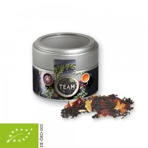 Bio Weihnachts Schwarztee, ca. 30g, Metalldose Mini mit Sichtfenster silber