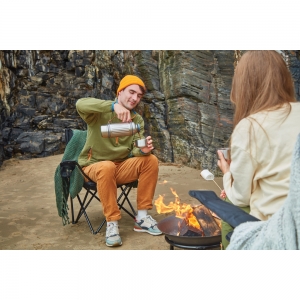 Artikel-Nr: XND4391702Diese 1-Liter-Vakuum-Isolierflasche aus Edelstahl ist für jedes Abenteuer geeignet – egal, ob Sie auf Wanderwegen unterwegs sind, am Strand entspannen oder die Pisten unsicher machen. Dank ihrer verstärkten Struktur und ihrem robusten Design hält sie Getränke bis zu 24 Stunden lang heiß oder eiskalt. Sie ist absolut auslaufsicher und verfügt über einen Stahlverschluss mit praktischem Ausgießer sowie zwei doppelwandige Edelstahlbecher. Die breiten Becher bieten zusätzliche Stabilität auf unebenem Boden, während ein dicker Nylonriemen das Tragen und Ausgießen erleichtert. Eine Silikondichtung verhindert das Tropfen, wenn die Becher verstaut sind, und die Flasche ist spülmaschinenfest, sobald der Riemen entfernt wurde. Ein nachträglicher angebrachter Druck hält einer Spülmaschine jedoch nicht Stand.
