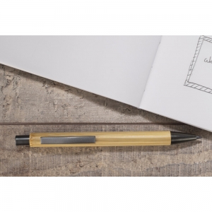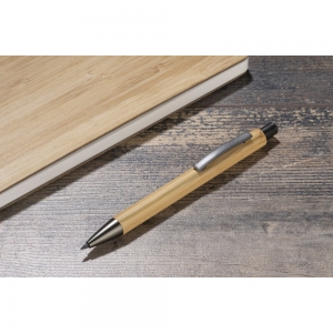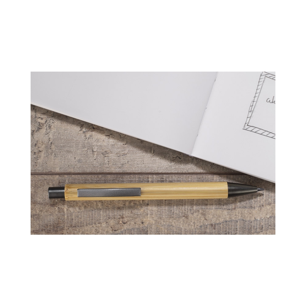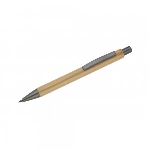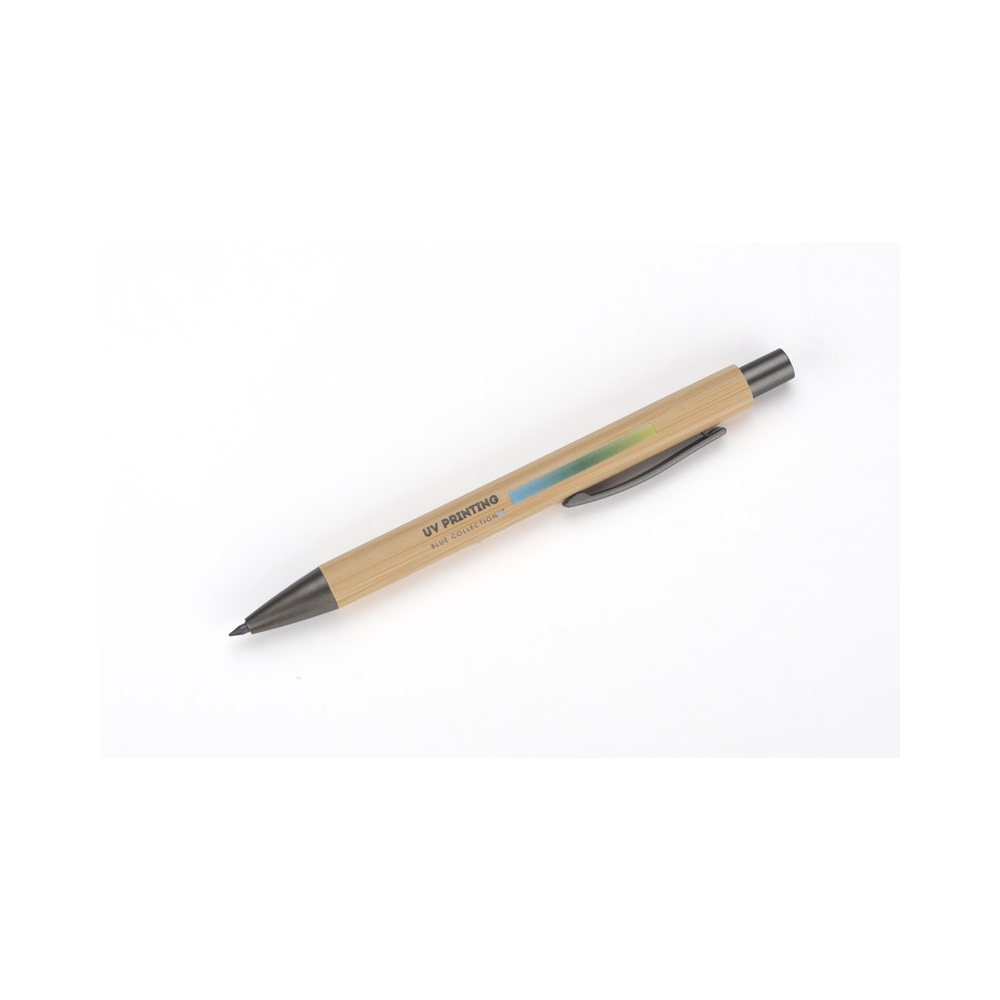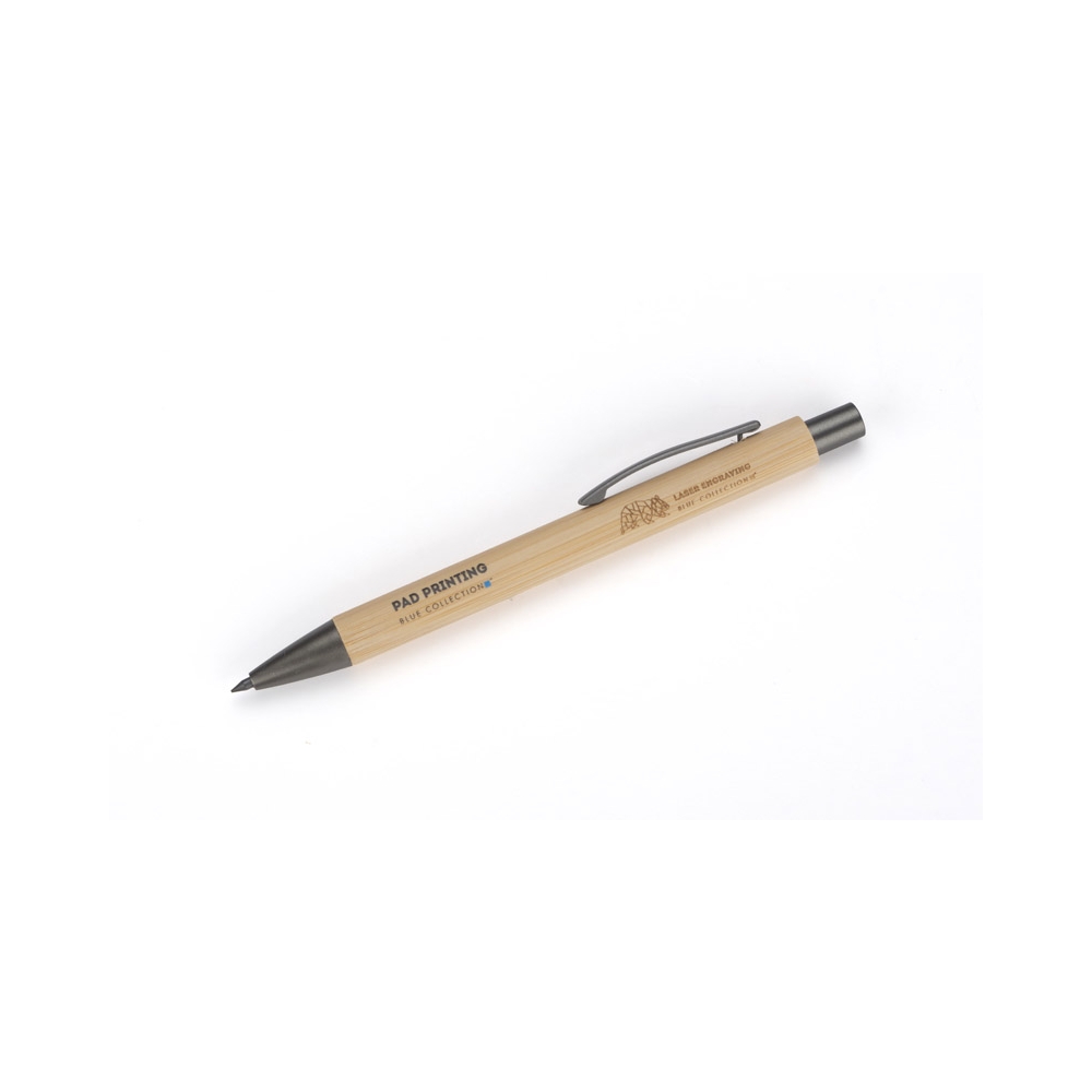 Artikel-Nr: ARD19693-17EVER ist ein Füllbleistift mit einem speziell gehärteten Griffel, der einen ähnlichen Schreibkomfort wie ein frisch angespitzter Bleistift bietet. Der Bleistift hat den gleichen Mechanismus wie ein Kugelschreiber. Der Körper ist aus Bambus mit graphitfarbenen Metallelementen gefertigt.