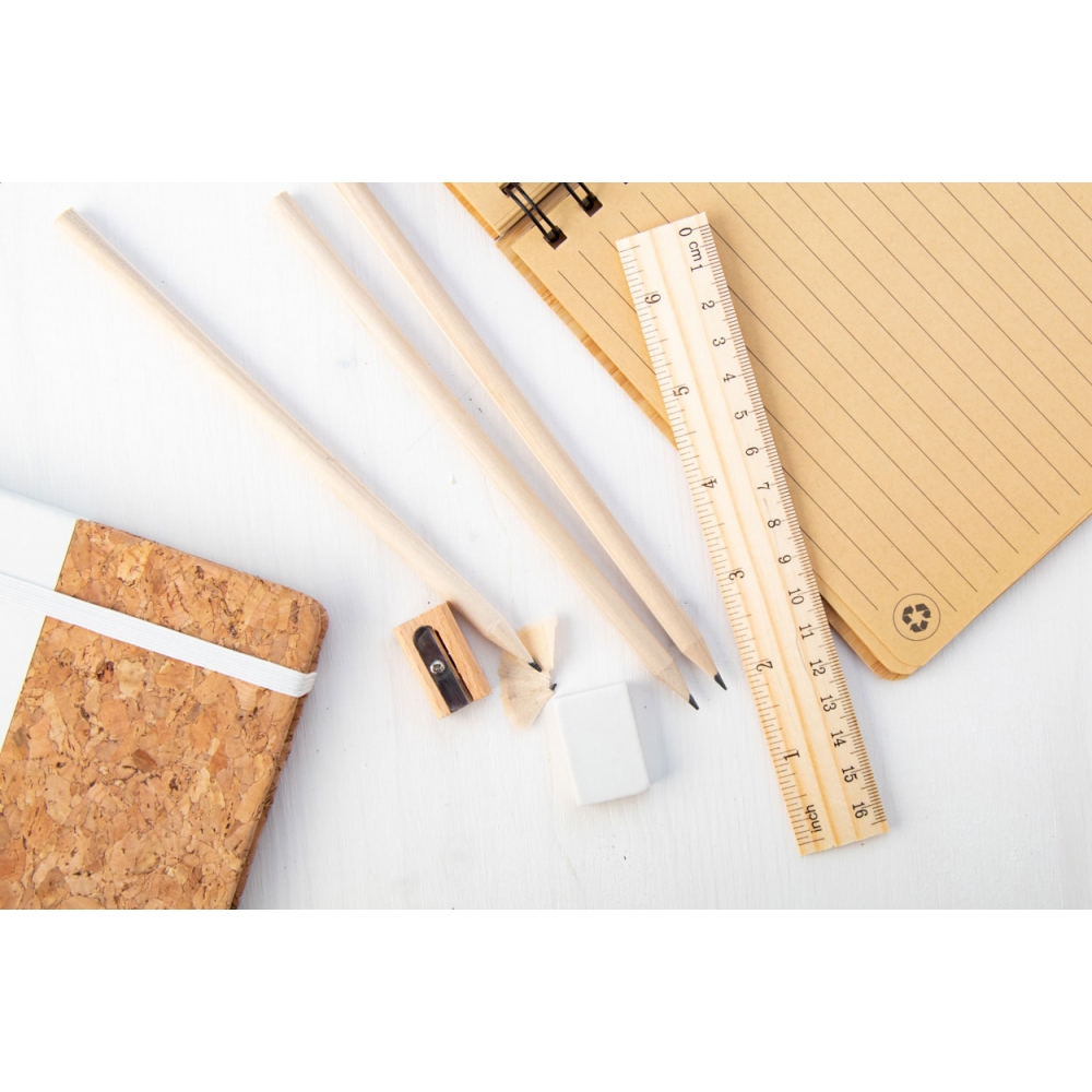 Artikel-Nr: AND7912603 Bleistifte mit Lineal, Spitzer und Radiergummi in einer Pappschachtel.