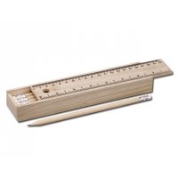 Acht Stück Grafitbleistifte im Holzetuimit 20 cm (8 in) Lineal, ungespitzt.