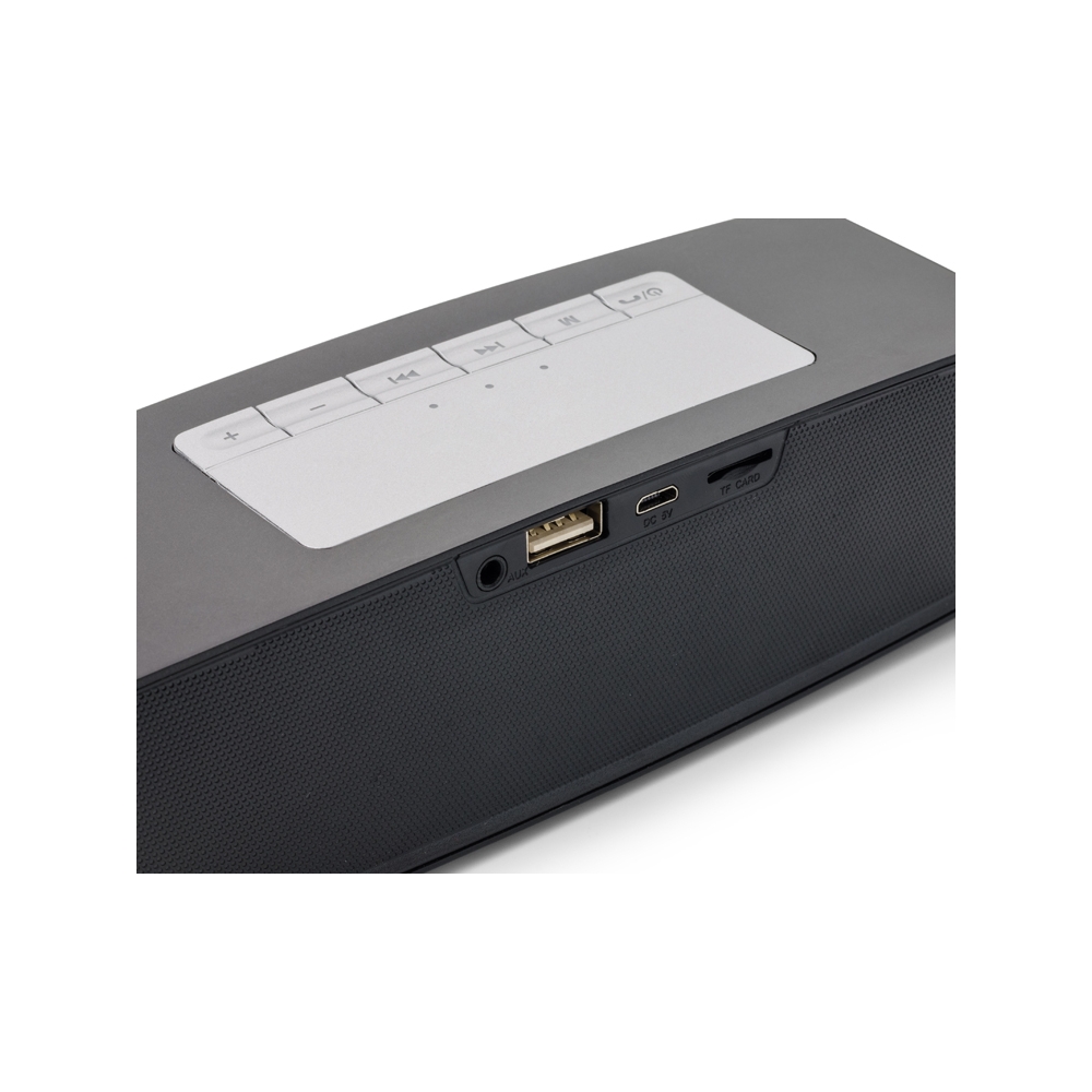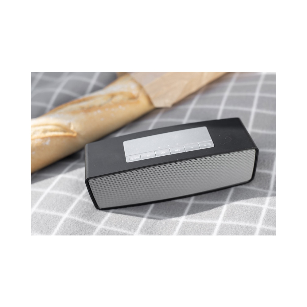 Artikel-Nr: ARD09068Eleganz und sauberer, Stereo Klang verschlossen im stillvollen Gehäuse bewirken, dass die Lautsprecher ""AMBIENT"" jede Party in Gang bringen. Dank vielen Eingängen kann die Musik praktisch aus jedem Gerät abgespielt werden – neben Bluetooth bedient der Lautsprecher auch die Verbindung mit Hilfe eines mitgelieferten AUX-Kabels, microSD Karte und USB-Arbeitsspeichers. Er verfügt über einen eingebauten FM-Tuner. Der Lautsprecher lässt sich zudem als Freisprecheinrichtung verwenden. Das Produkt stimmt mit einschlägigen EU-Richtlinien überein und verfügt über das CE-Zeichen. Technische Daten: Ausgangsleistung: 3W x 2Spannung: 5V S / N-Verhältnis: ≥ 85 dB Batteriekapazität: 1200 mAh