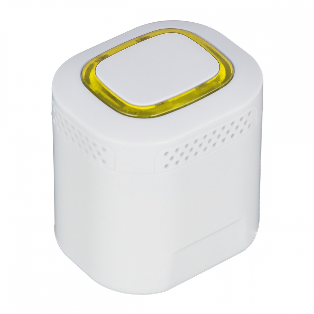 Artikel-Nr: RFS_S_80504-WE-YWDieser kleine und klangvolle Bluetooth®-Lautsprecher mit Bluetooth®-Technologie 4.1 (ca. 10 m Reichweite) wird komplett über Ihr Smartphone oder das angeschlossene Audiogerät gesteuert und hat eine Spielzeit von bis zu 4 Stunden. Sie können ihn an der integrierten Schlaufe sogar am Schlüsselbund befestigen. Mitgeliefert wird ein 2-in-1 Ladekabel, das auch per 3,5 mm Klinkenstecker als Verbindungsgerät zum Audiogerät dienen kann. Er hat 2 Watt Ausgangsleistung. Der umlaufende Farbring an der Werbefläche wird per LED hinterleuchtet.