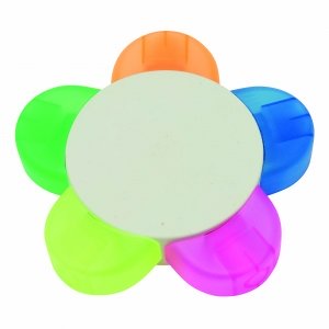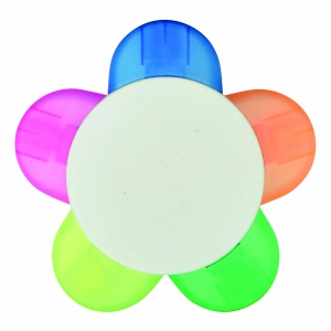Artikel-Nr: INP56-1103340Blumenförmiger Textmarker FLOWER: mit 5 Farben (grün, orange, blau, pink, gelb), zu 30% aus recycelten Milchkartons