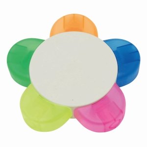 Artikel-Nr: INP56-1103340Blumenförmiger Textmarker FLOWER: mit 5 Farben (grün, orange, blau, pink, gelb), zu 30% aus recycelten Milchkartons
