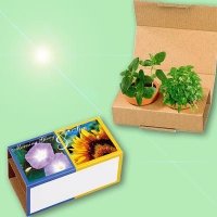 Inhalt: 2 Tontöpfchen 4 cm, 2 Substrattabletten Samen: Prunkwinde, Zwergsonnenblume Format: 128 x 65 x 45 mm Gewicht: ca. 94 g Werbefläche: 110 x 18 mm