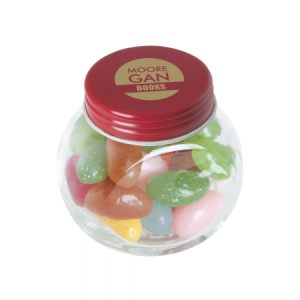 Bonbonglas mini gefüllt mit ca. 40 gr. Jelly Beans mit farbigem Deckel