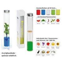 Artikel-Nr: W2224014Wachstum von der Wurzel bis zur Blüte live miterleben - ein durchsichtiges Nährstoffgel macht´s möglich! Samen wählbar: Greenplant, Akelei, Kamille, Impatiens, Rettich, Basilikum, Fichte, Zwergsonnenblume. Weitere Samensorten stehen zur Auswahl, die mit den Pflanzgel-Farben klar, rot, neon, violett, gelb, grün oder blau kombiniert werden können. Das edle Glasröhrchen mit silberfarbenem Schraubdeckel ist individuell bedruckbar - ein Werbeartikel, der auf jedem Schreibtisch seinen Platz findet und mit perfekt platziertem Logo einen 'glasklaren' Werbeerfolg verspricht!