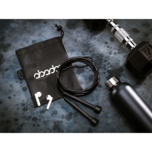 Artikel-Nr: CLP135998PVC-Sportspringseil (270 cm) mit Kunststoffgriffen. Wird einzeln in einem RPET-Polyester Beutel geliefert.